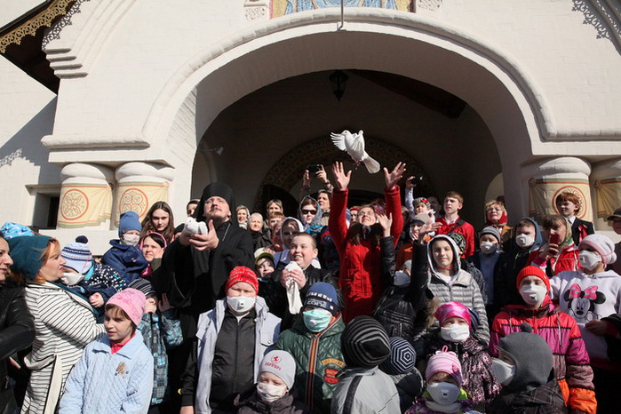 Выпуск голубей в ФНКЦ в праздник Благовещения Пресвятой Богородицы